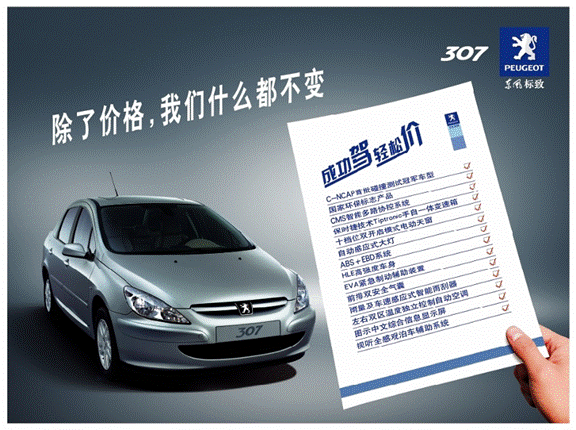 作为 “当家花旦”的东风标致307自上市之初起,即凭借着优雅的外形、精准的操控以及丰富的人性化配置迅速赢得了消费者的青睐。2006年经过CMS技术的全新智能升级,到驾御版、舒适版直至刚推出的天窗版,东风标致307系列产品一直处在不断丰富和完善过程中,为不同消费层次的客户提供了多样化和个性化的选择;C-NCAP碰撞测试中的优异成绩、入选政府绿色环保采购清单等,也使得东风标致307系列在保持稳定销量的同时更赢得了良好的市场口碑。这些都为东风标致307能在近3年来一直保持稳定的价格体系奠定了坚实的基础,在降价极为频繁的今天是极为少见的。许多已购车用户也认为自己的利益得到了保护。这正是东风标致一直致力打造的“值得信赖的狮子”的品牌形象。