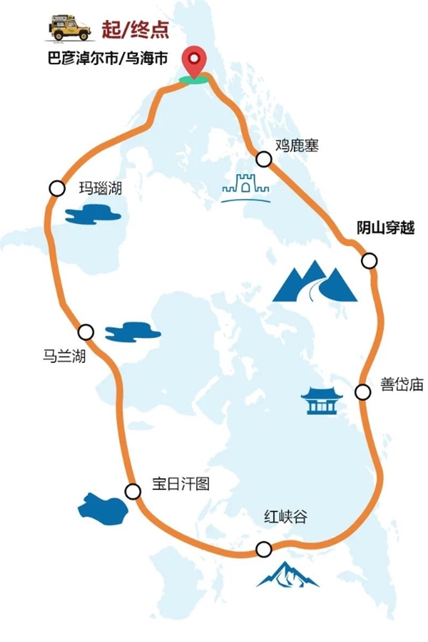 第二天:巴彦淖尔-穿越阴山(鸡鹿塞)-好汉坡-塞外驿站-善岱庙-阴山石刻-巴彦淖尔